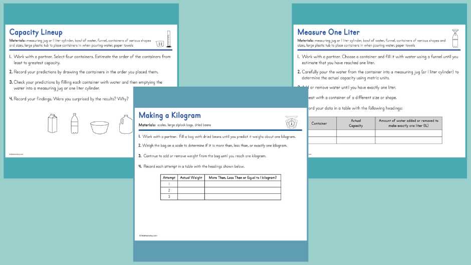 When students physically measure, pour, weigh, and compare quantities, they begin to build mental benchmarks for different units.